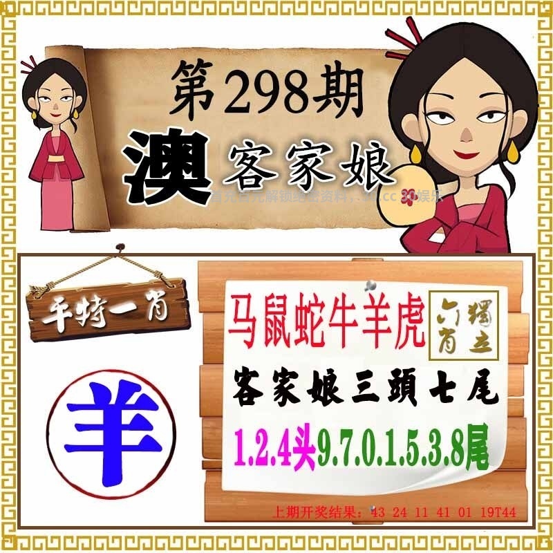 | 298期:九肖 | 虎猴羊鸡马蛇猪鼠狗 | 开:羊23 |