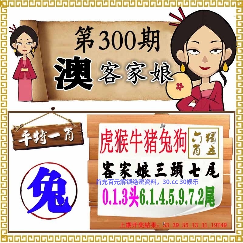 | 301期:⑦码 | 34 05 42 01 19 26 39 | 开:牛05 |